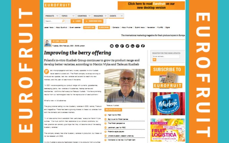Właśnie ukazał się artykuł w „Eurofruit Magazine”, gdzie przedstawiciele szkółek z naszej grupy in-vitro Kusibab opowiadali o kierunku rozwoju naszej grupy. „Nigdy nie stoimy w …