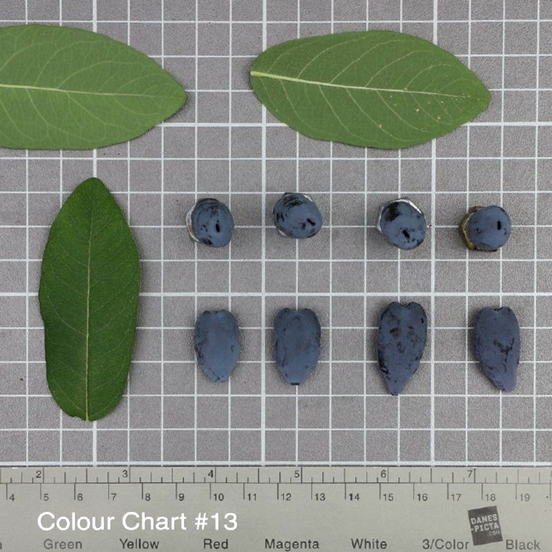 - The fruit is oval, barrel-shaped, medium-sized, dark blue, and covered with a waxy coating. The taste is sweet and sour. Average weight: 2.5-3.5 g.