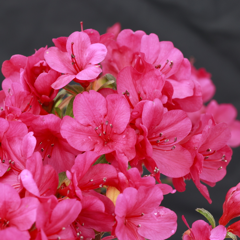 - Kolor kwiatów waha się od średniej czerwieni do ciemnej purpurowoczerwonej. Kwiaty zebrane są w liczne kwiatostany umieszczone wzdłuż pędów. Roślina jest obficie obsypana kwiatami, co czyni ją bardzo atrakcyjną w czasie kwitnienia. Średnica kwiatów wynosi około 6-6,5 cm.