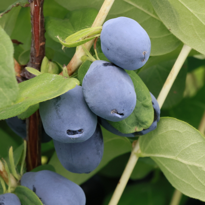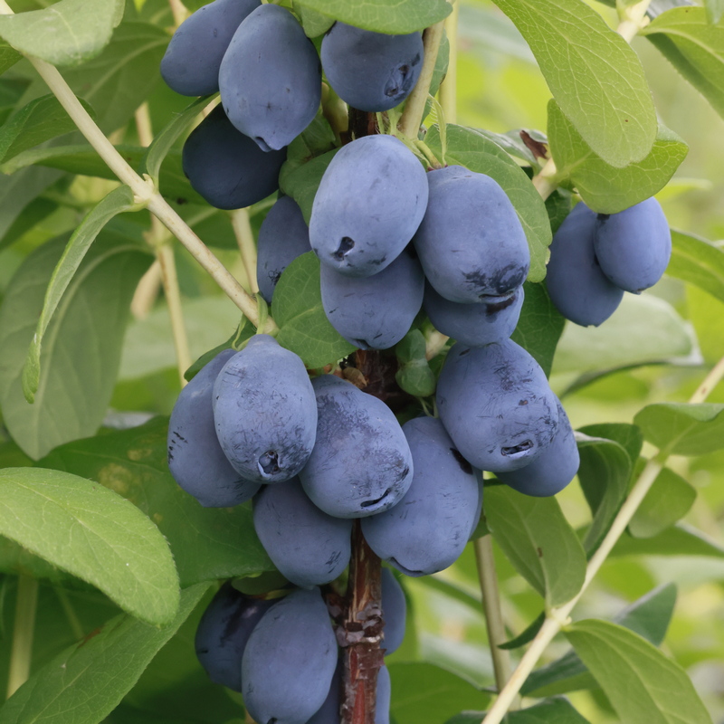 - Owoce kuliste, owalno-okrągłe, duże, o średniej masie 2 g, Średnia wielkość owocu: 1,8 do 2 cm długości i 1,4 do 1,5 cm szerokości, pokryte nalotem woskowym, o atrakcyjnym wyglądzie. Miąższ o jędrnej konsystencji i o przyjemnym, łagodnym kwaskowym smaku, z wartością BRIX 15° (dane hodowcy). Szypułka owocowa krótka. Blizna poszypułkowa sucha.