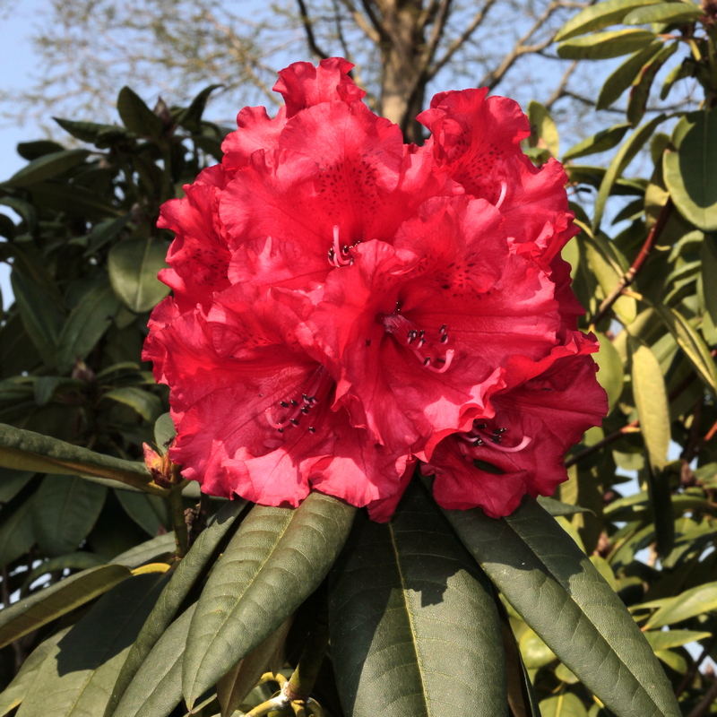 - Цветки чисто-красные, не выгорающие на солнце, с нежным рисунком на верхнем лепестке и легкой волнистостью по краям лепестков. Цветки крупные, от 8,5 до 9,5 см в диаметре, собраны по 15–17 штук в эффектные, также очень крупные (17 см в высоту и 19 см в ширину) верхушечные соцветия.
